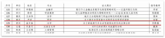 近日,国家开放大学关于开展2024年优秀学位论文推荐遴选结果揭晓,我校1篇学位论文入选。该论文《关于新能源汽车自动驾驶侵权责任的法律分析》是省校开放教育学院学生崔开泰撰写,由李黔豫老师指导,具体评选结果如下: