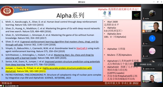 王以松教授介绍了人工智能技术(特别是深度学习技术)在各个应用领域取得的突破性进展,如围棋、自然语言理论、机器视觉、生物信息学(蛋白质折叠)等。在讲座中,以具体的应用场景回顾了智能的基本概念及其最新进展,并展开传统的基于逻辑(知识表示与推理)的人工智能研究方法的一些具体案例,包括归纳学习基因调控网络,多源异质知识库的模糊上下文系统以及基于遗忘理论的程序正确性(包括模型检测)。