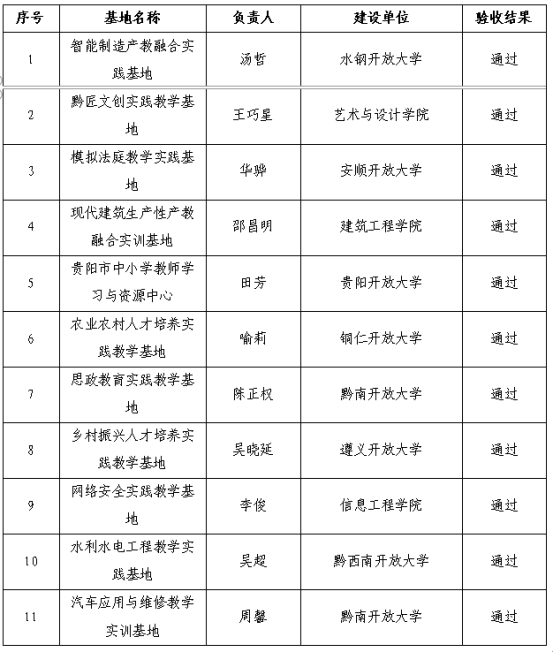 为强化实践教学基地在人才培养中的支撑作用,进一步提高开放教育办学质量,根据《关于印发<贵州开放大学开放教育创优提质实施方案>的通知》(校办发〔2022〕29号)要求,项目建设周期为一年,经校外专家评审,通过验收。